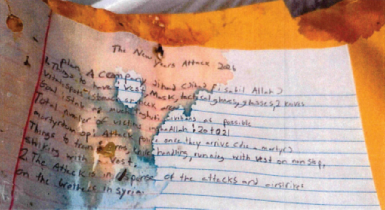 The note also included a section labeled as “martyrdom op,” which described a plan to attack police responding to the site of the attack so Sturdivant would die a martyr, officials said.
