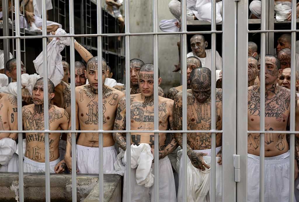 Accused gangster at the Counter Terrorism Confinement Center in El Salvador. Photo by John Moore/Getty Images.