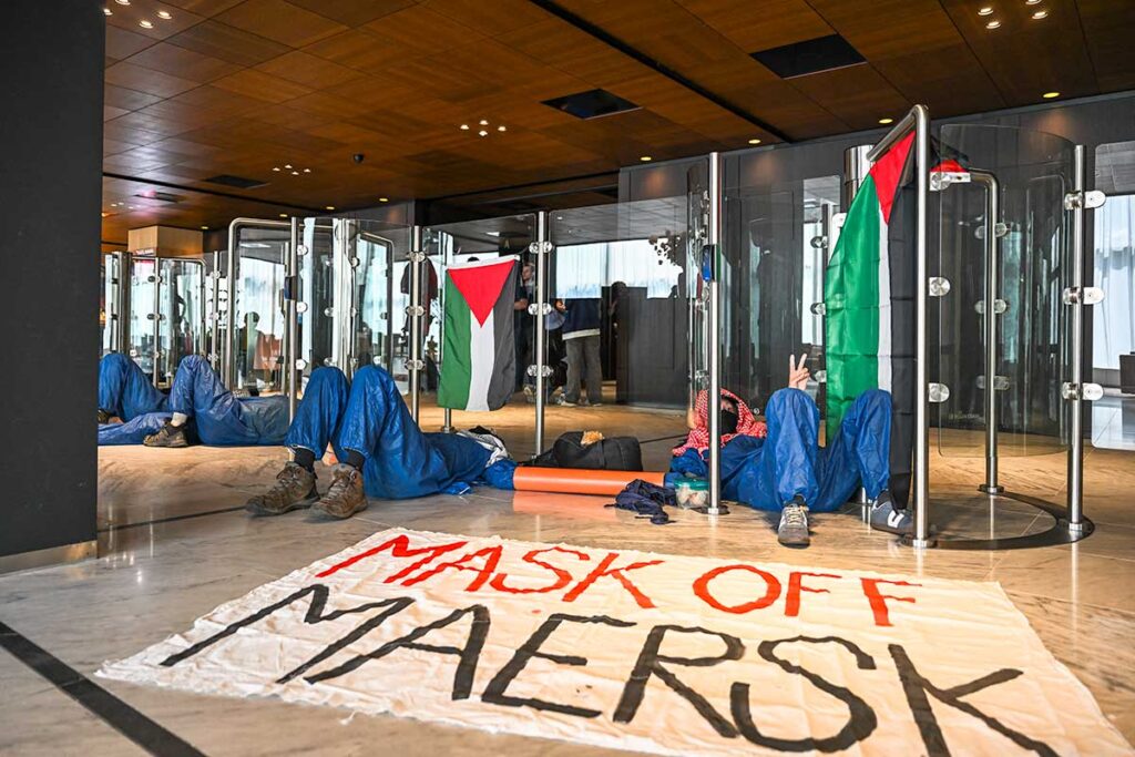 Over Columbus Day weekend, the F-35 boycott movement continued to surge. On October 19 in Houston, activists demanded a local arms embargo to block the shipment of F-35 wings from the port, aligning with the Mask Off Maersk campaign led by the Palestinian Youth Movement. The Democratic Socialists of America reaffirmed their support for both Mask Off Maersk and Labor for an Arms Embargo in their October 13 statement, “Until Palestinian Liberation.” Even the official page of the BDS Movement declared October 13 through 18 the “Week of Action Against F-35s” and called on supporters to “escalate pressure through peaceful disruptions, email storms . . . and/or mass protests against complicit ministries, members of parliaments and manufacturing companies.”