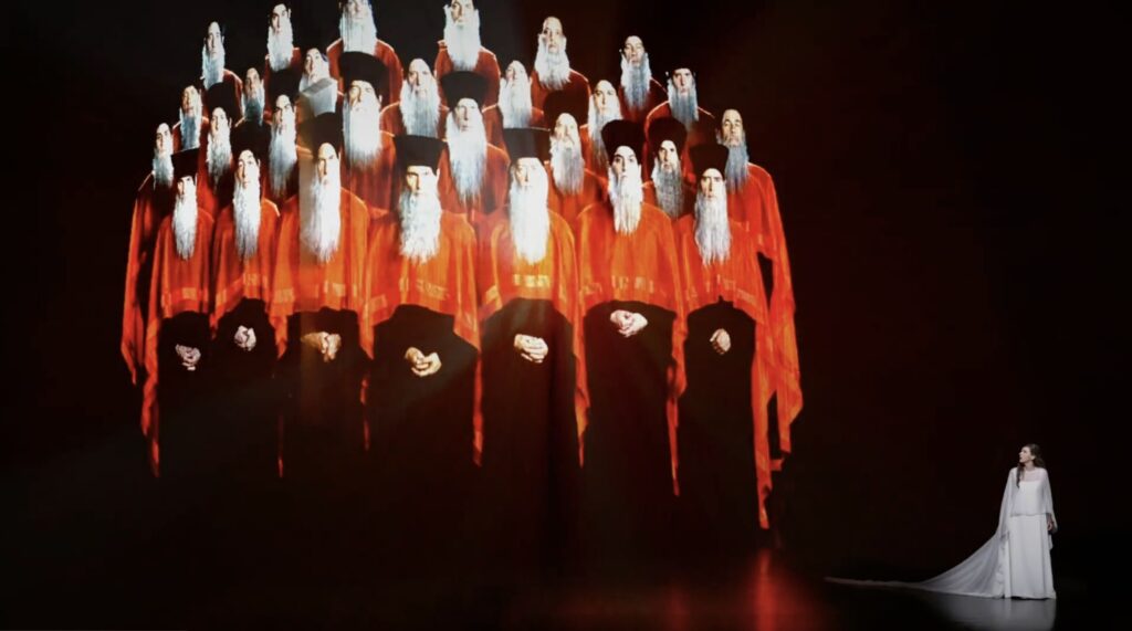 For its “new” production of Aida this fall, the Paris Opera imported one from the 2017 Salzburg Festival, a choice that will have surprised many who saw it there. The production by the accomplished Iranian visual artist, photographer, and film director Shirin Neshat was created for a starry event: the soprano Anna Netrebko’s role debut as Aida in performances conducted by Riccardo Muti. Yet Neshat had no prior experience directing an opera. It was a baptism by fire for a woman of demonstrated talent in other areas. Understandably, film played a significant role in the production, specifically black-and-white footage of migrants, mainly women in somber dress near a sea. The sequences sometimes emerged as tentative and incidental to the opera’s drama. The production otherwise reflected Muti’s aversion to radical stagings, but this virtue was compromised by Neshat’s old-fashioned, stand-and-sing direction of the principals. Salzburg revived the production in 2022, reportedly with alterations.