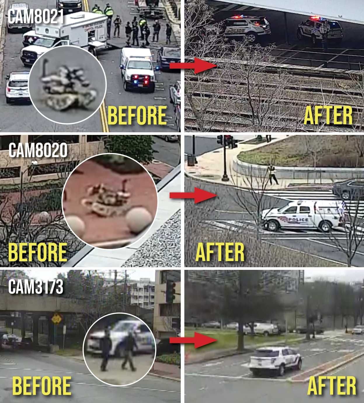 The USCP has since confirmed that one of its agents found the pipe bomb near the DNC park bench, but there is no video showing that because key cameras were turned away from the DNC building at the time. The fact that the DNC bomb was discovered by plainclothes Capitol Police officers, and not merely a pair of passersby, was not made public until Blaze News broke that news in January 2024.