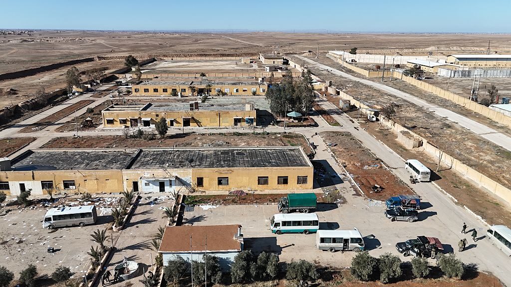 An aerial view shows a prison in the town of Al-Shaddadah, where SDF, reportedly released members of the Daesh terrorist organization a day earlier in Al-Hasakah, northeastern Syria, on January 20, 2026. (Bakr Al Kasem/Anadolu via Getty Images)