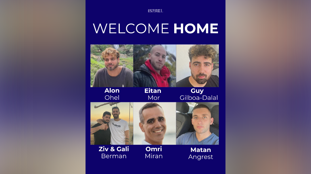 The Israeli government confirmed the return of Alon Ohel, Eitan Mor, Guy Gilboa-Dalal, Ziv and Gali Berman, Omri Miran, and Matan Angrest, all kidnapped by Hamas during the October attacks.