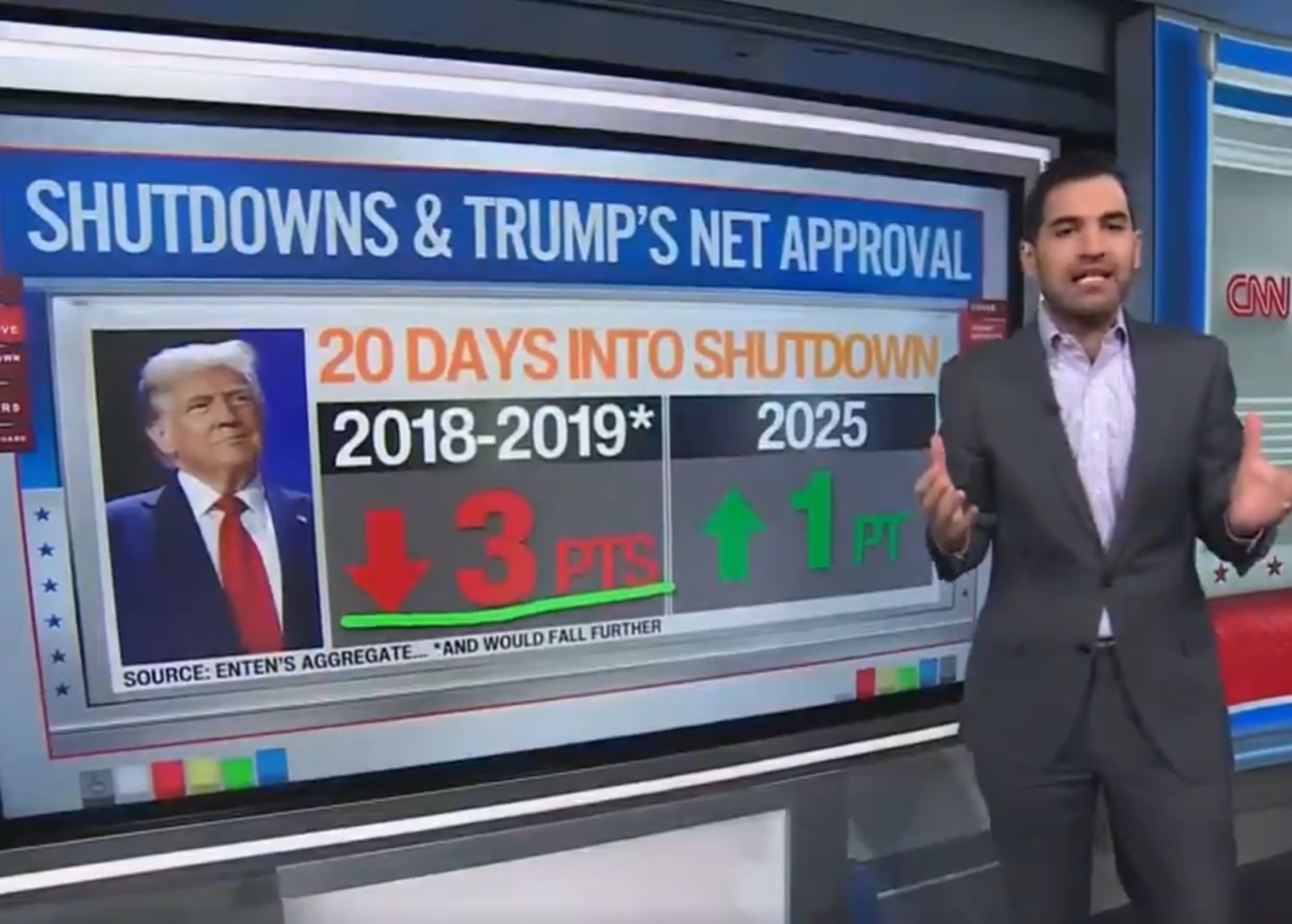“This shutdown hasn’t eaten into Donald Trump’s support at all,” Enten said. “His net approval rating is actually up a point in terms of his popular support.