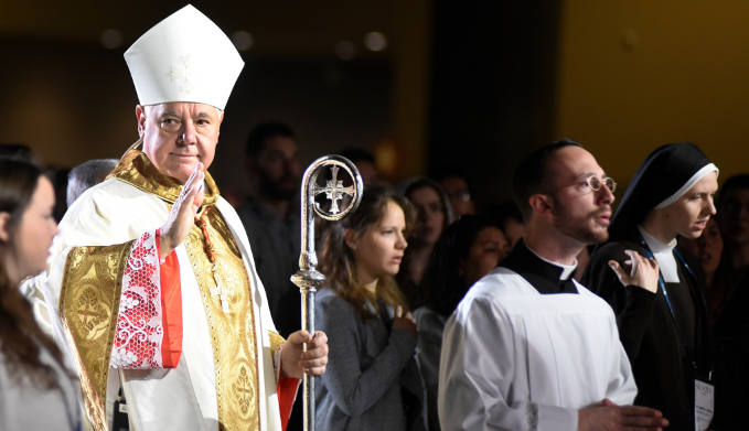 Cardinal Gerhard Muller arrives for Mass at the annual Student Leadership Summit of the Fellowship of Catholic University Students at the Phoenix Convention Center Jan. 1, 2020. (CNS photo/Jesus Valencia, Catholic Sun)