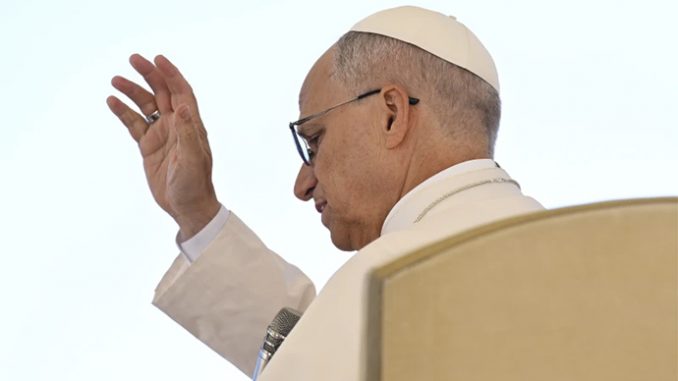 Pope Leo XIV blesses pilgrims in St. Peter’s Square during an audience for the Jubilee of Hope on Oct. 4, 2025. (Credit: Vatican Media)