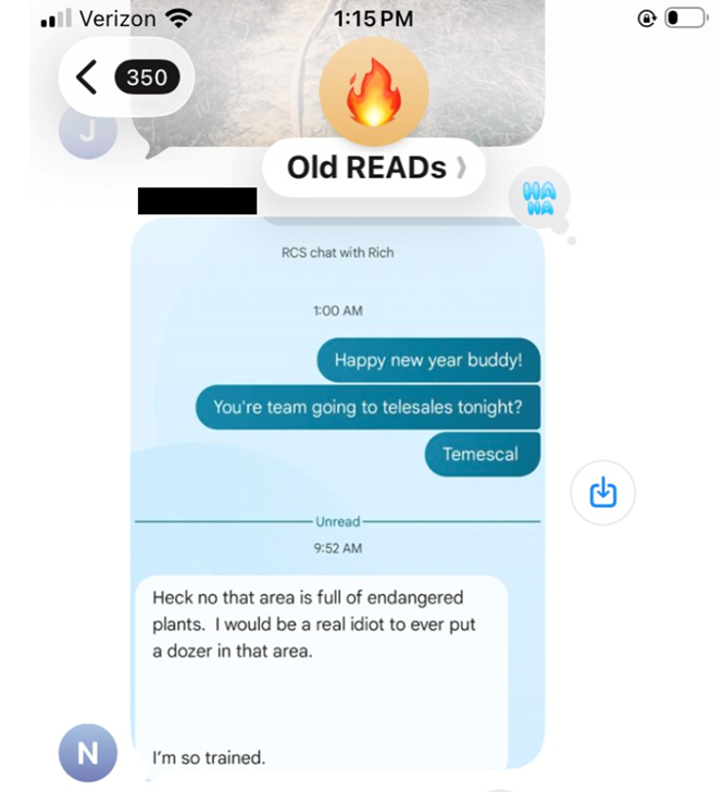 Text messages between State Parks employees during the Lachman Fire, obtained through discovery in the ongoing lawsuit, suggest that these policies guided the agency’s real-time response. They also indicate employees knew the fire was burning in or near areas with endangered plants and cultural sites.
