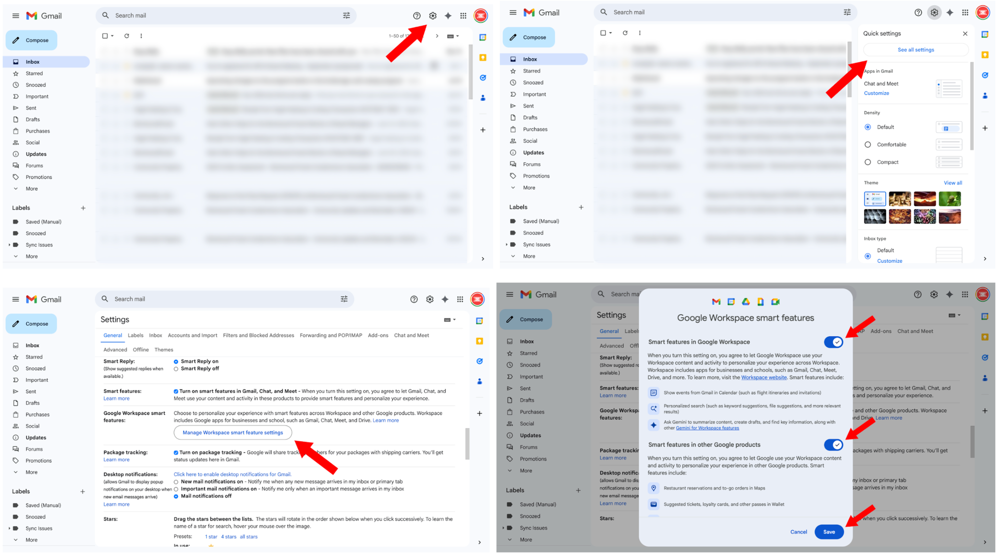 6. Uncheck “Smart features in Google Workspace” and “Smart features in other Google products.”