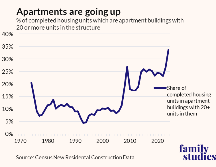 Apartment construction is running at a record high, even as we know that apartments are not where Americans want to raise their families. Even worse, the apartments are getting smaller.
