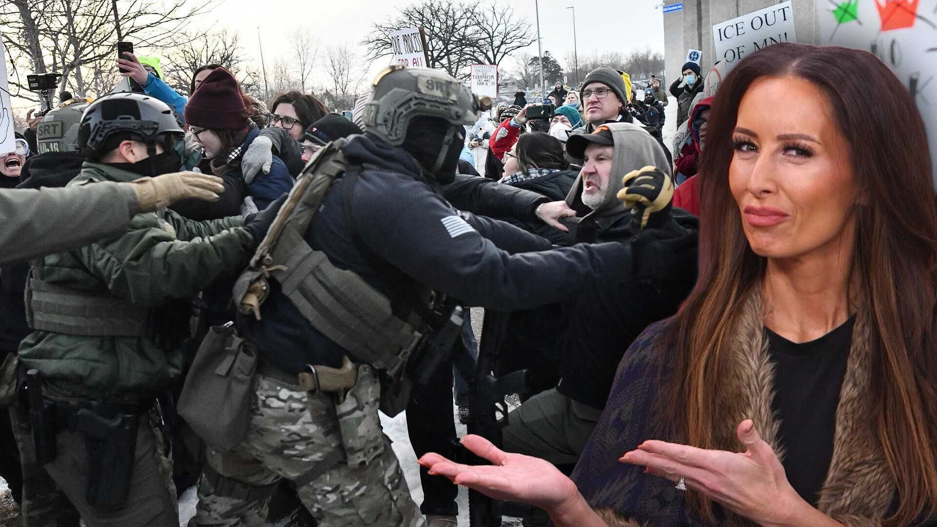 The report tastefully shows ICE arresting illegal immigrants, who are shockingly not being harassed by protesters.