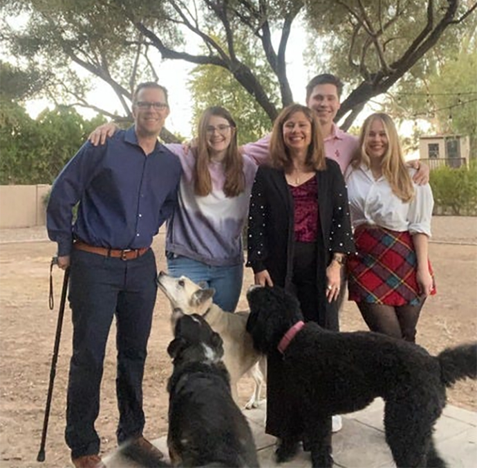 No discussion of Dan’s faith life would be complete without mentioning his Jewish wife Traci’s love and support of him and their three children. Before they were married, the question arose of how Traci would feel about her children being raised Catholic. Her reaction embodied the expansiveness of her love: she said she loved Dan as a Catholic, so why wouldn’t she love their children as Catholics too? She jokingly added that since the kids would be Catholic, the dogs would be Jewish.