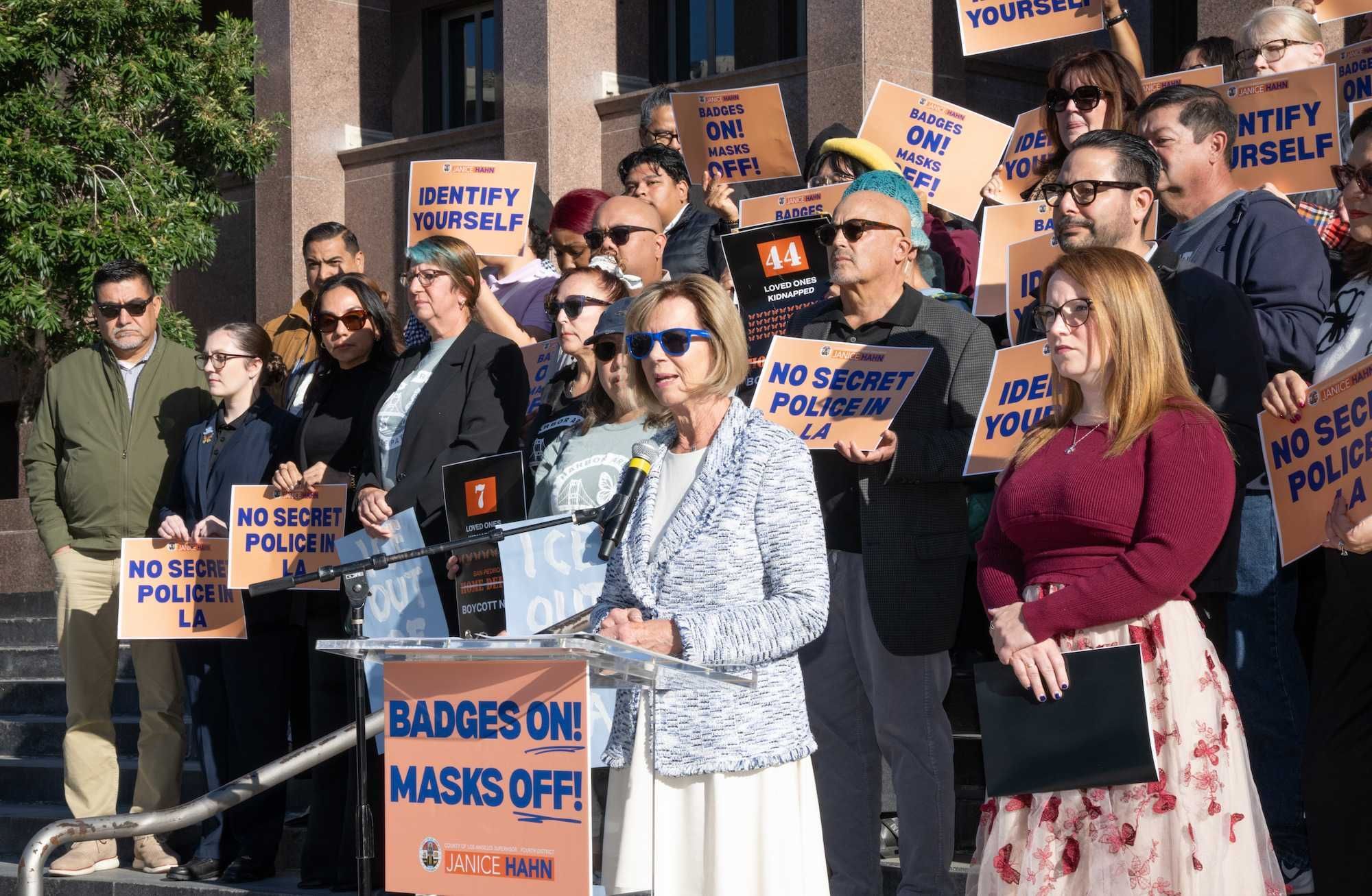 In a statement about the vote, Supervisor Janice Hahn accused ICE of behaving like an “authoritarian secret police” force.
