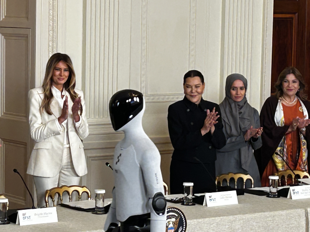 Melania Trump and spouses of other world leaders look on at the humanoid robot featured at the event. Jon Kahn / Breitbart News