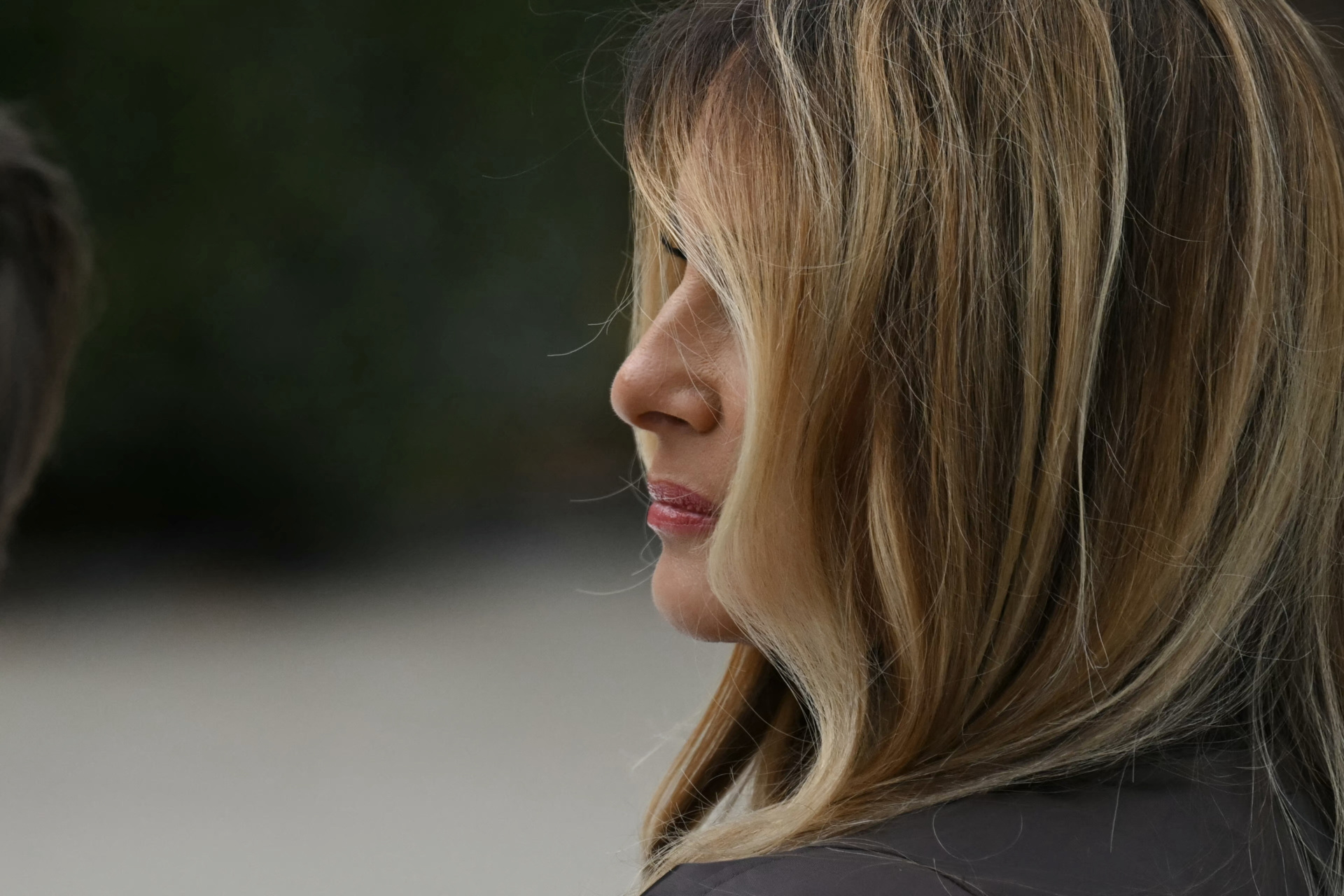 US First Lady Melania Trump looks as US President Donald Trump speaks during the turkey pardon ceremony in the Rose Garden of the White House in Washington, DC on November 25, 2025. (Photo by ANDREW CABALLERO-REYNOLDS / AFP via Getty Images)