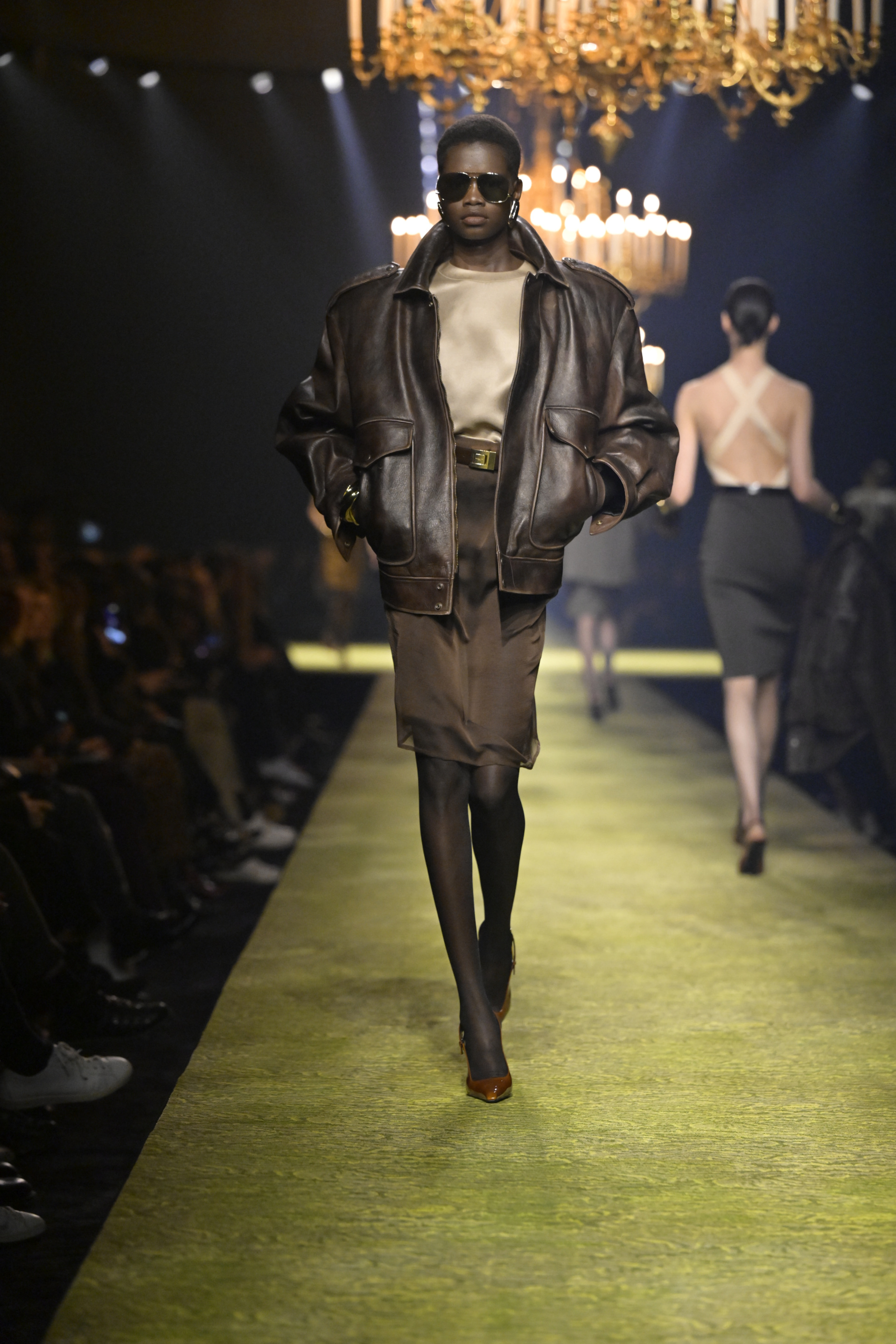 A model walks the runway during the Saint Laurent Womenswear Fall Winter 2023-2024 show as part of Paris Fashion Week on February 28, 2023 in Paris, France. (Photo by Stephane Cardinale – Corbis/Corbis via Getty Images)