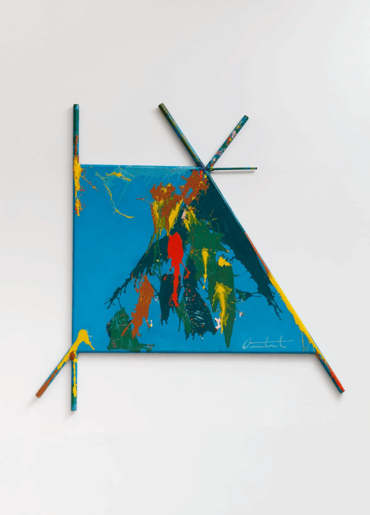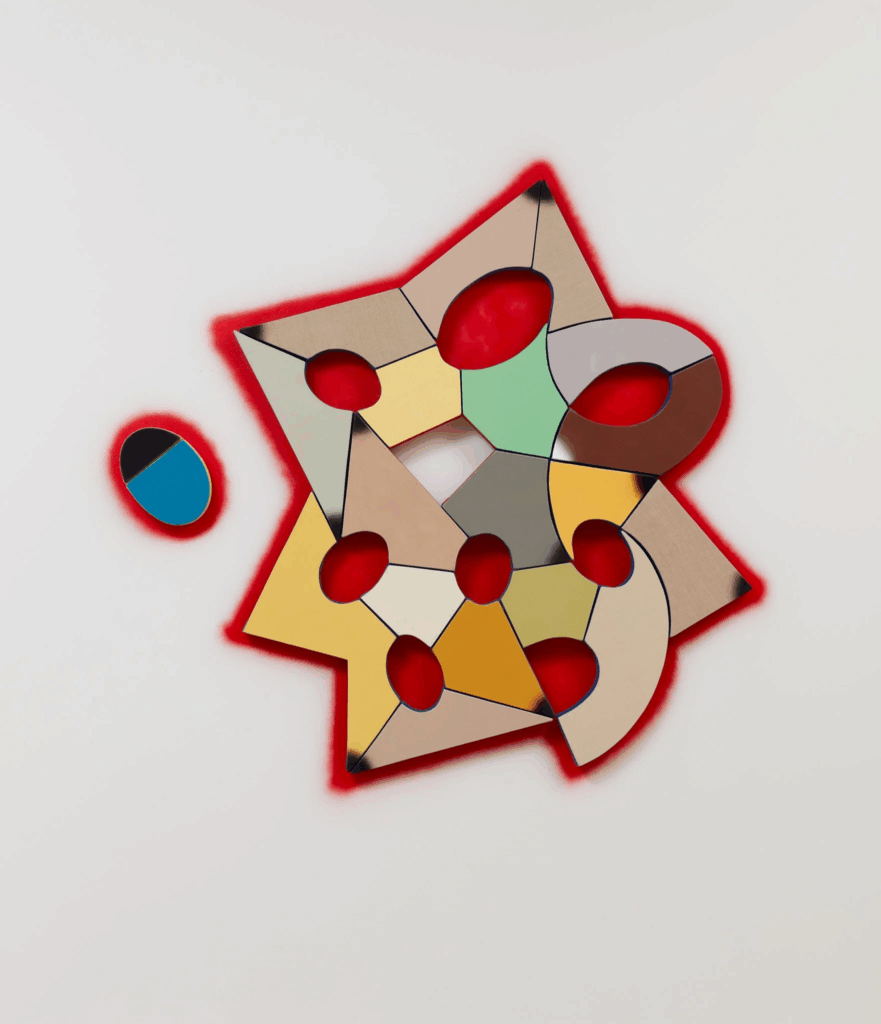 “Building Models: The Shape of Painting” is about a kind of painting that has for decades been called “shaped canvas,” although many examples of it aren’t canvases at all, and some are more like sculpture. Enthusiasm for this type of painting burgeoned in the 1960s, a period replete with innovation in artistic forms. As is apparent in the work of Frank Stella, Ellsworth Kelly, and Lee Bontecou, the shaped canvas evolved from abstract painting, which, while emphasizing flatness, in those years was foregrounding its own physical and material nature. One of the breakthroughs in the rise of the shaped canvas came with the inclusion of figurative elements, as seen in works by Robert Rauschenberg and Red Grooms.