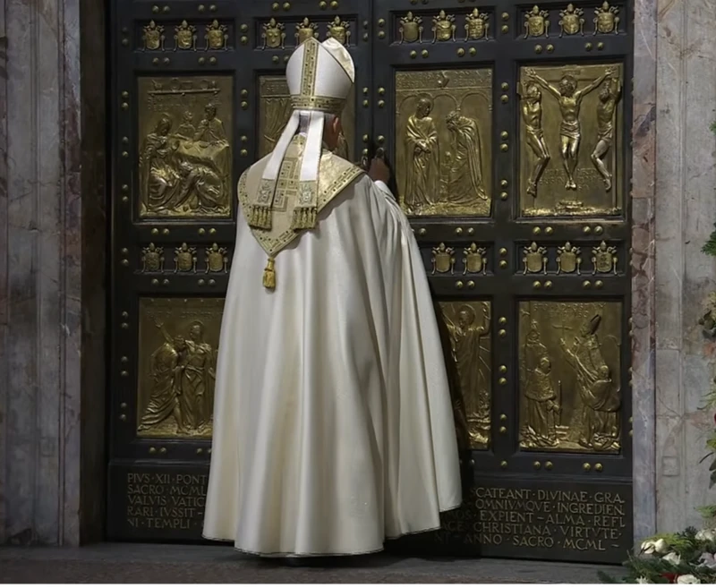 Before closing the doors, the Holy Father pronounced in Latin the formula prescribed by the rite, following a practice established in 1975 and later simplified by St. John Paul II during the Jubilee of the Year 2000.