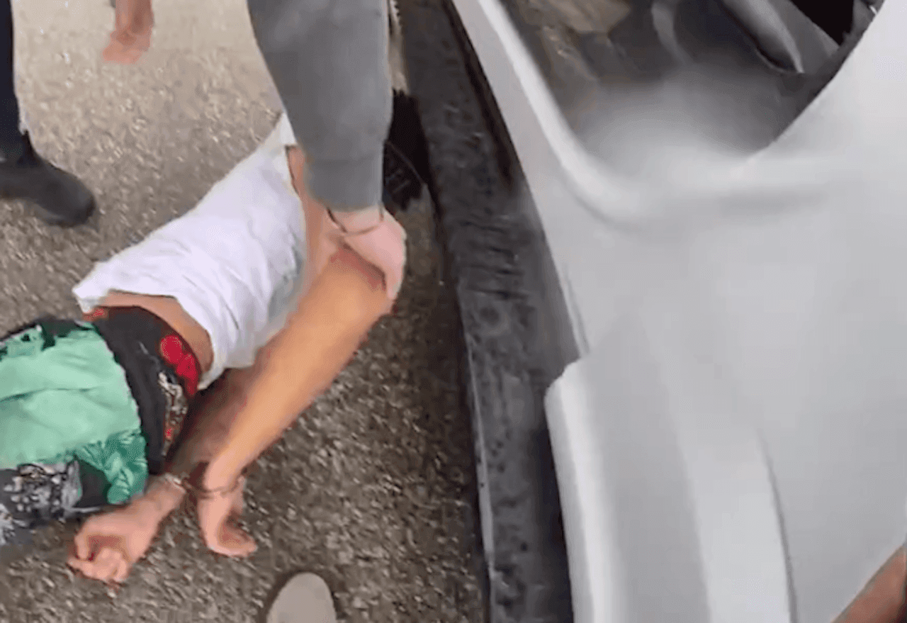 Cops decided to run the vehicle’s tags, but the skin-and-bones thug remained full of attitude.