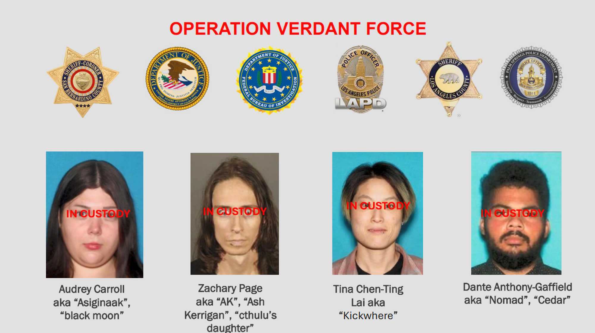 The FBI foiled a New Year’s Eve terrorist plot, arresting four members of a radical anti-Israel extremist group accused of planning five coordinated bombings across Los Angeles, the Department of Justice announced Monday. The scheme involved painting Hamas triangles near their targets, and photos show “Free Palestine” stickers scattered across bomb-making stations, according to a criminal complaint.