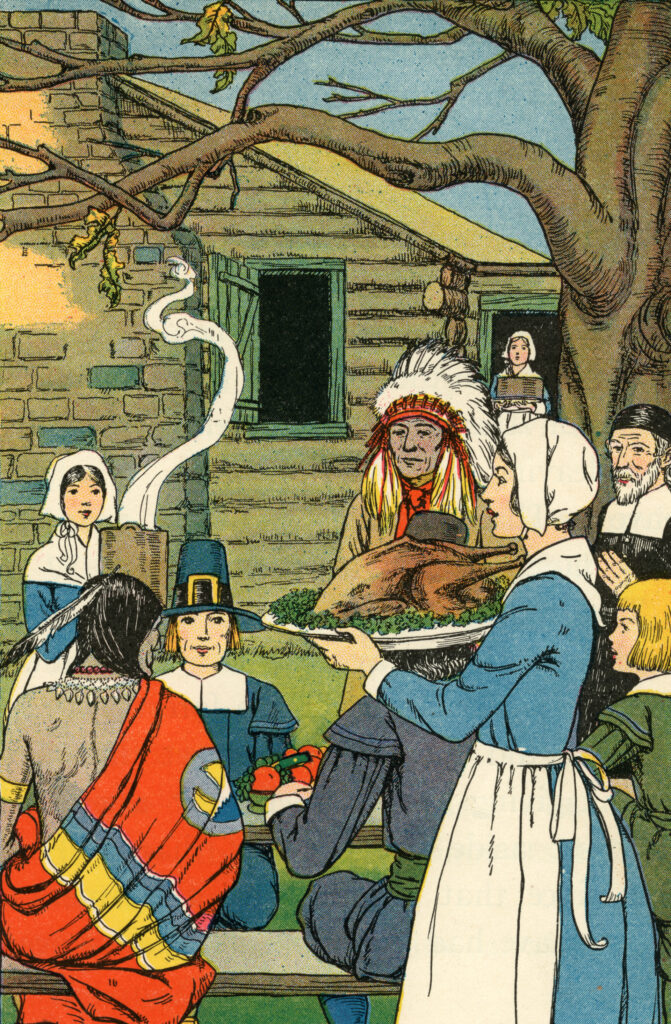 Now, many of the Pilgrims literally believed that God had sent Squanto to save them. And they believed, the Pilgrims believed, that without Squanto they never would have survived, or thrived. And they experienced a tremendous harvest in 1621, and that’s the big gathering that is taught in the history books, the native Indians and the Pilgrims joined together for a huge feast, which is the foundational story of the Thanksgiving story that’s taught in public schools.