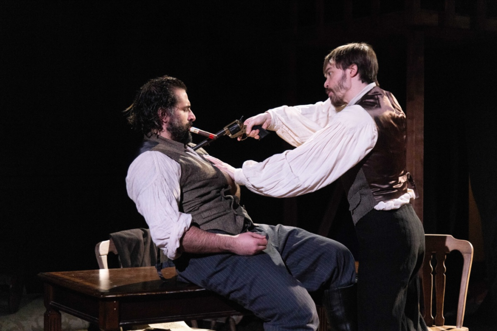 Anton Chekhov’s Ivanov, directed by Michael DeFilippis, at the West End Theater (through April 12):There’s a lot of Vanya about these days, so it’s good to see Chekhov’s rarer Ivanov hit the off-Broadway stage courtesy of the New American Ensemble in Michael DeFilippis’s electric, gimmick-less production in a small church-theater space on the Upper West Side. Mike Labbadia’s wiseguy turn as the parasitic estate-manager Borkin is a comic highlight, counterbalancing Zachary Desmond in the title role as a depressed, liberal landowner who resents his consumptive wife, Anna (Quinn Jackson), a convert from Judaism. Premiered in 1887, Chekhov’s first major play is rough around the edges but contains many of the raw ingredients of his later, more successful dramas: family dysfunction, downward mobility, the ennui of country life—and the proverbial loaded gun. —IS