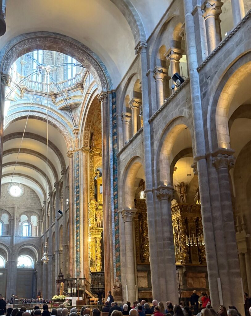 We were not going to be able to stay for Mass, so we toured the cathedral listening to the Spanish prayers. The famous Botafumeiro was a monumental thurible suspended between heaven and earth, and we imagined the thrill of seeing it swing across the nave. Maybe another day, God willing.