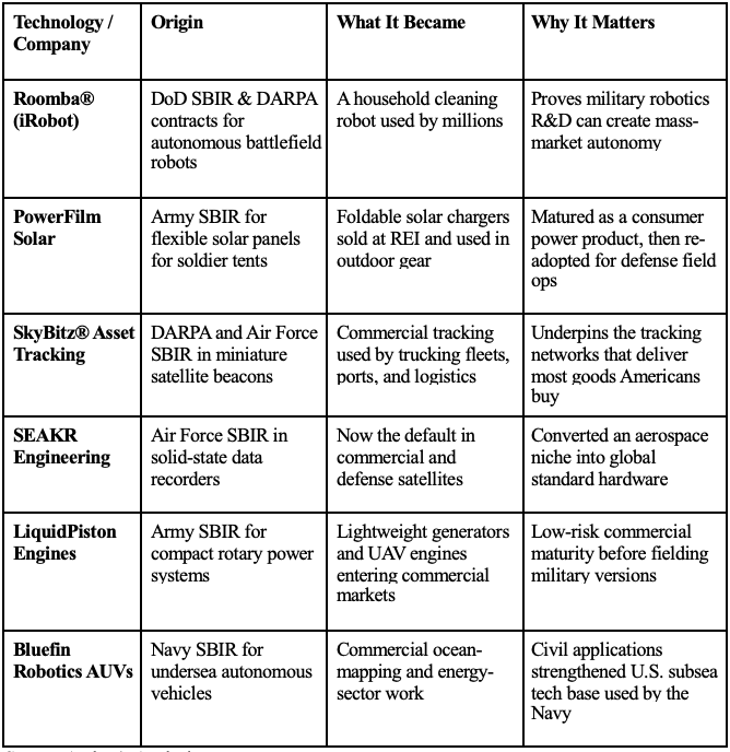 The Lesson:SBIR wasn’t designed to feed the Pentagon’s procurement pipeline. It was designed to create options—technologies that prove themselves in the market, mature without taxpayer risk, and are ready when defense or public missions need them.