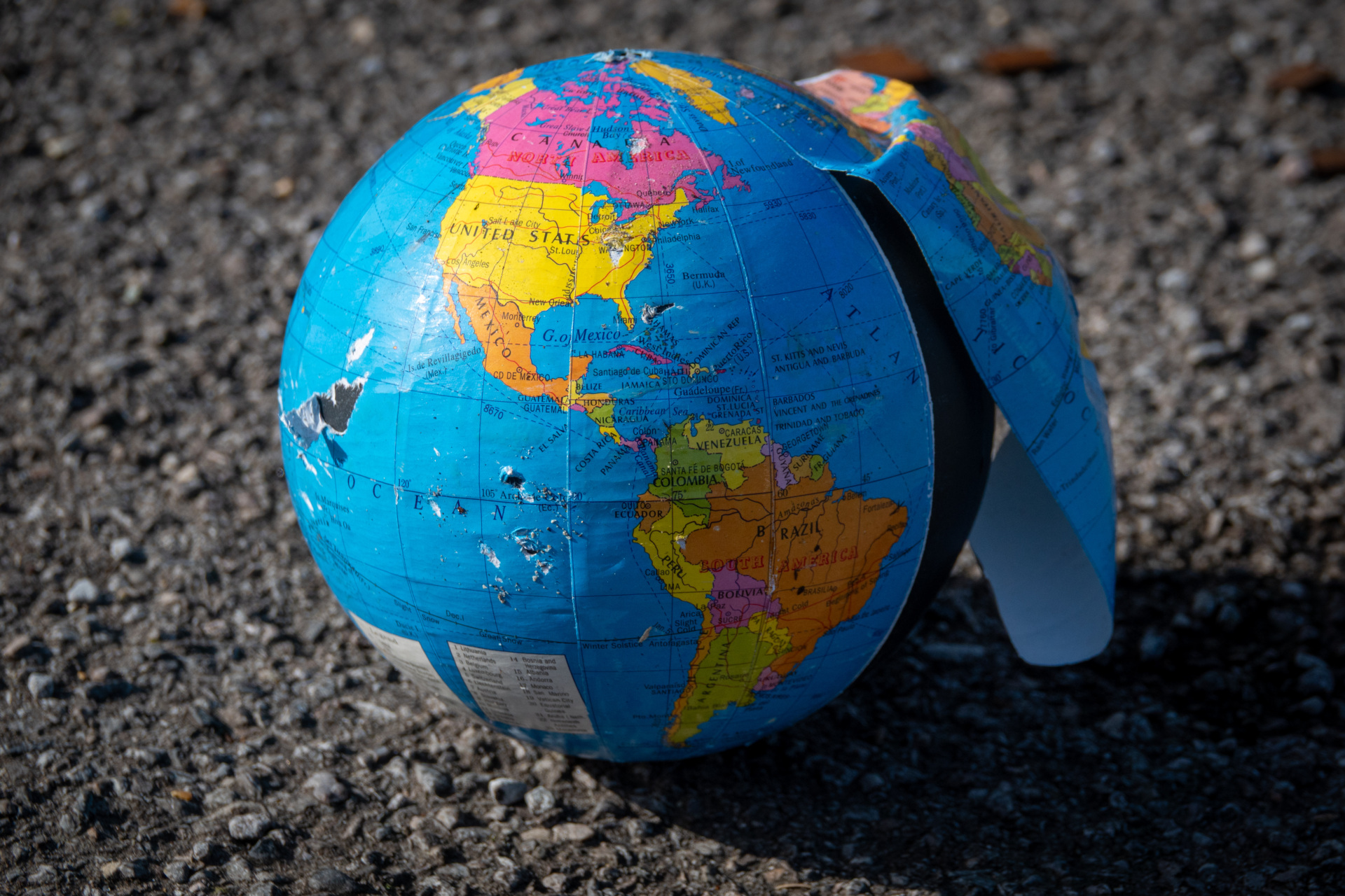 A damaged discarded globe is left on the pavement near the Port of Southampton on February 25, 2026, in Southampton, England. (Anna Barclay/Getty Images)