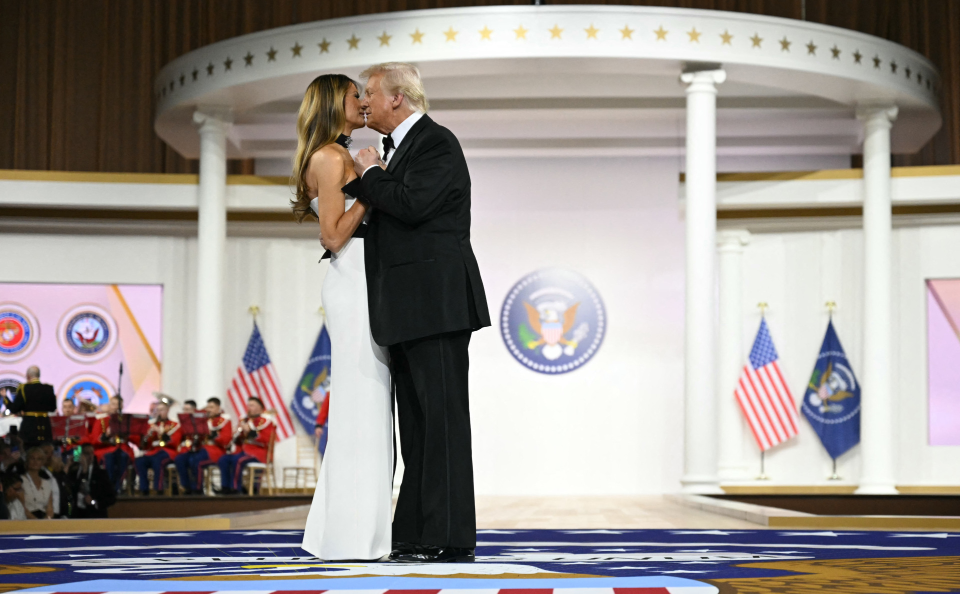 President Donald Trump and First Lady Melania Trump dance at an inaugural ball in Washington, DC, on January 20, 2025. (JIM WATSON/AFP via Getty Images)