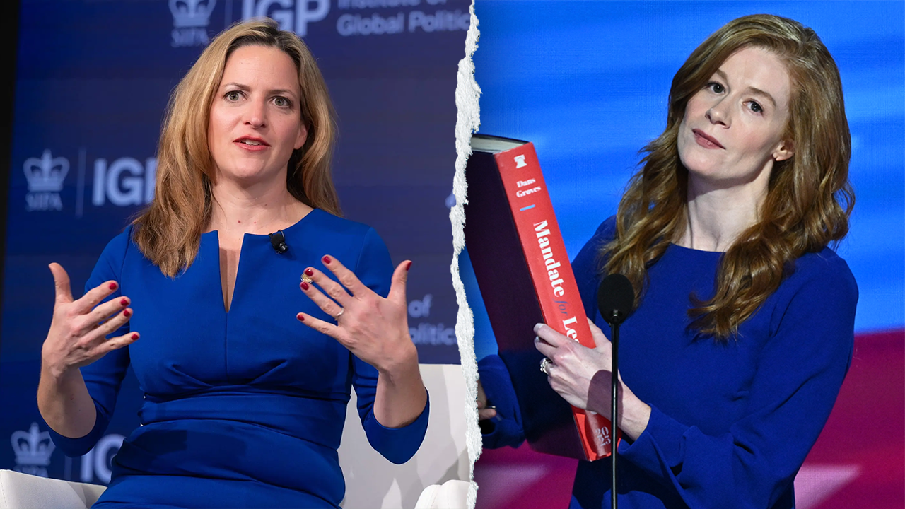 Left: Michigan Democratic gubernatorial candidate and Secretary of State Jocelyn Benson and U.S. senatorial candidate, state Sen. Mallory McMorrow. (Shahar Azran/Getty Images; MANDEL NGAN/AFP via Getty Images)
