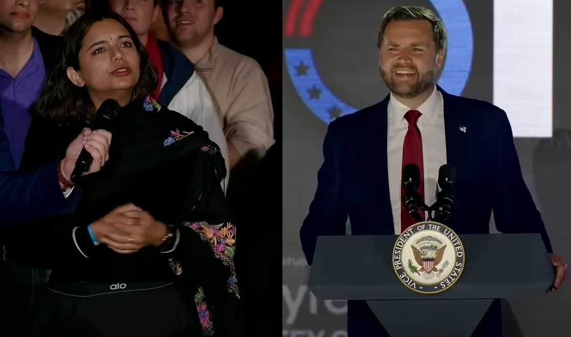 Vance’s remarks evidently vexed a young female student of apparent Indian origin in the crowd who used her time at the microphone to complain both about the vice president’s stated desire for his Hindu wife to one day join him in following Christ as well as his desire to taper the number of immigrants legally admitted into the United States.