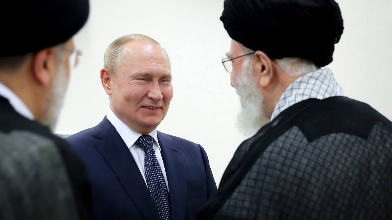 Image: Russian President Vladimir Putin meets Ayatollah Ali Khamenei in July 2022 (Wikimedia Commons).