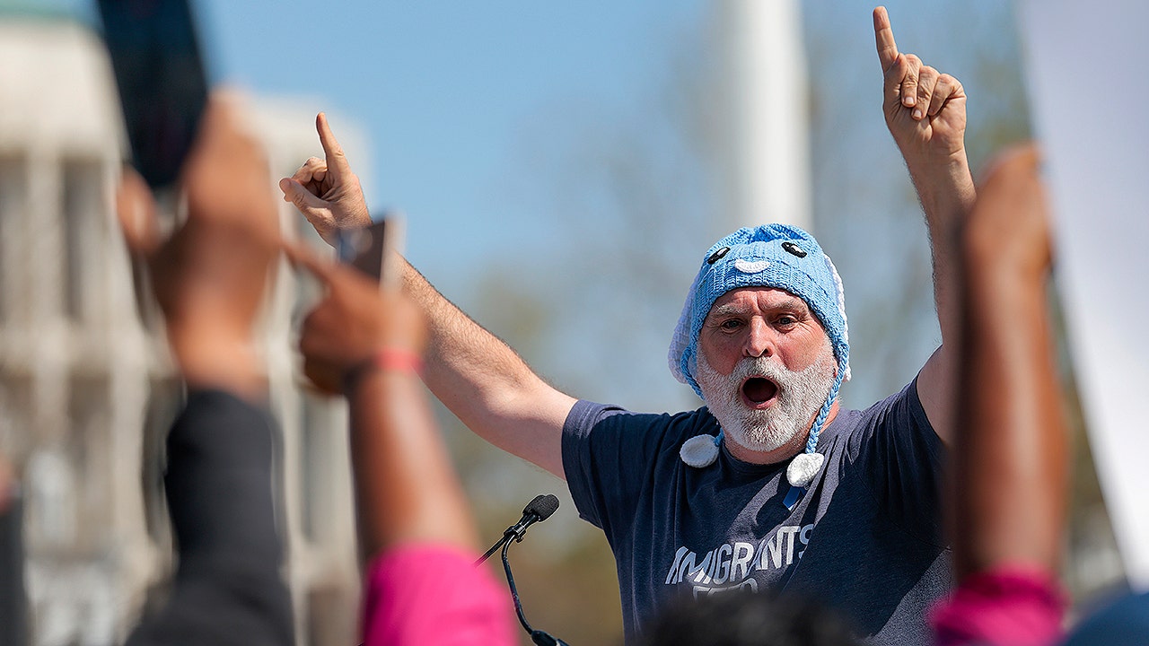 Well-known D.C. chef and activist José Andrés leads protesters outside the Supreme Court on Wednesday, April 1, 2026. (Photo by Heather Diehl/Getty Images)