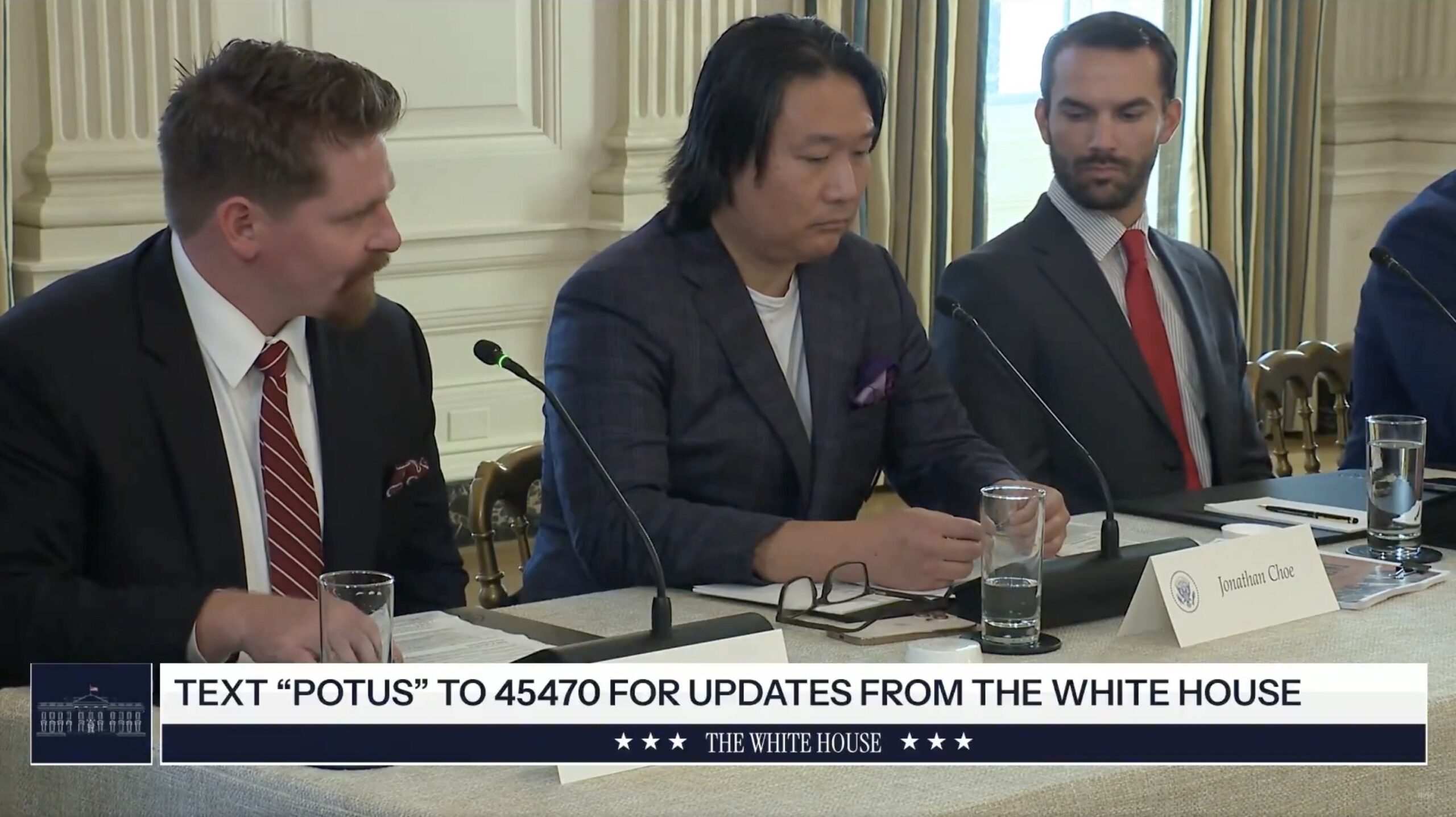 Discussion at the White House featuring three men at a table, focusing on policy updates and initiatives.