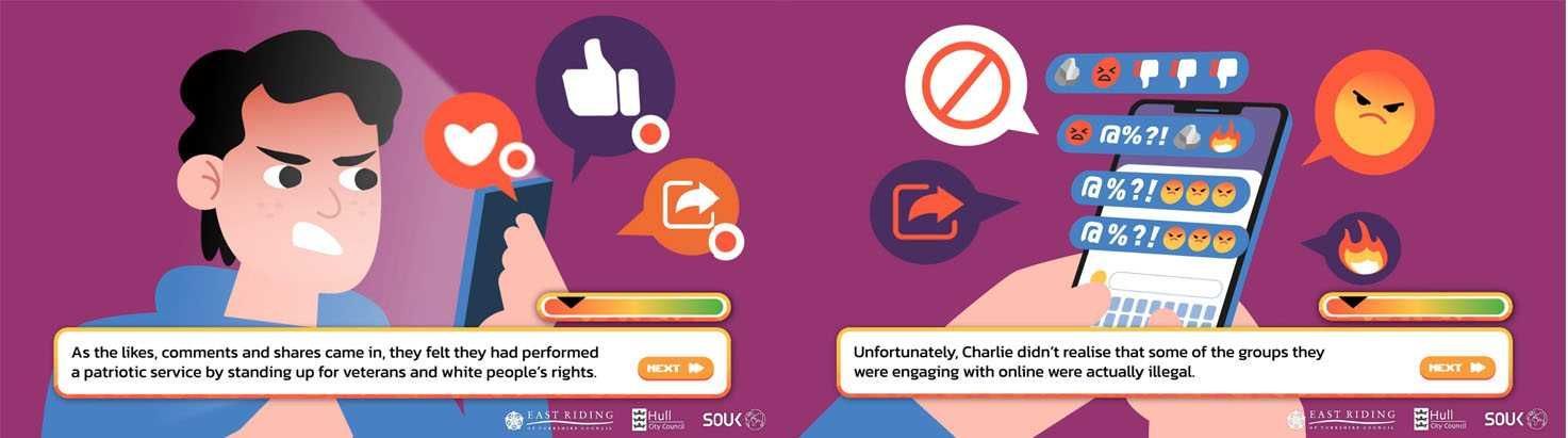 Screenshots from Pathways: Navigating the Internet and Extremism.
