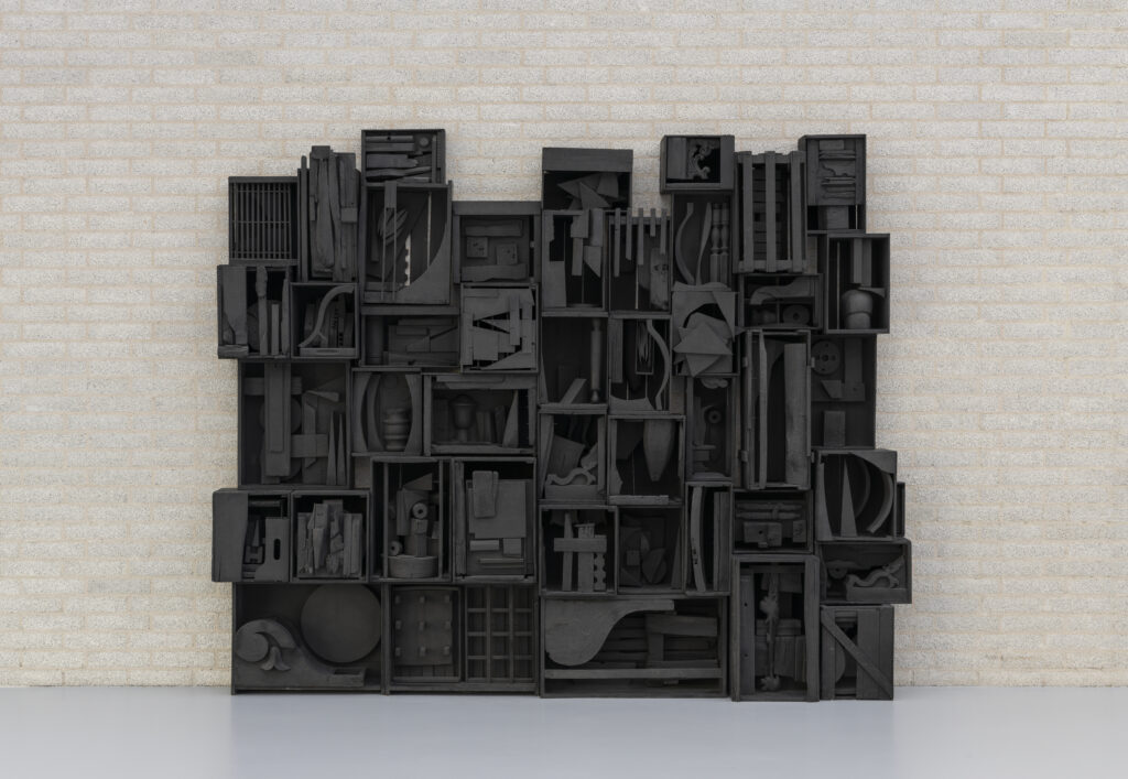 In her later years, the sculptor Louise Nevelson (1899–1988) was one of the most famous artists of the time, appearing on the covers of Look and The New York Times Magazine. Her extravagant, hieratic appearance in the tradition of Edith Sitwell and Isak Dinesen, with a face like that of an Aztec priestess, was photographed by Vogue. The New Criterion’s founding editor, Hilton Kramer, wrote in Arts Magazine in 1958—the year she became famous with her first large-scale “environment,” Moon Garden Plus One, and Sky Cathedral, her vertical tribute to New York—that her works were “appalling and marvelous, utterly shocking in the way they violate our received ideas on the subject of sculpture and the confusion of genres, yet profoundly exhilarating in the way they open an entire realm of possibility.” Kramer was averse to modish artist gimmicks, and his friendly support for Nevelson over the years bears remembering. Since her death, her popularity has somewhat dipped on the Continent (her last show in France was in 1974) but remains steady in the United States, where Pace Gallery has organized several Nevelson retrospectives since the 1960s, including an exhibition reviewed in these pages last year.