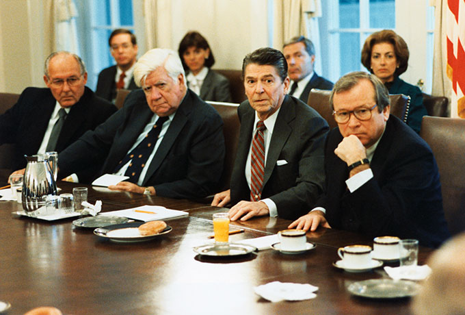President Ronald Reagan meets with members of Congress on the situation in Grenada in 1983. (Photo: Bettmann / Contributor / Bettmann via Getty Images)